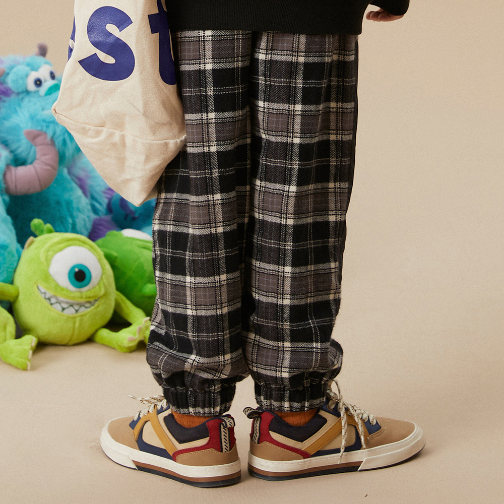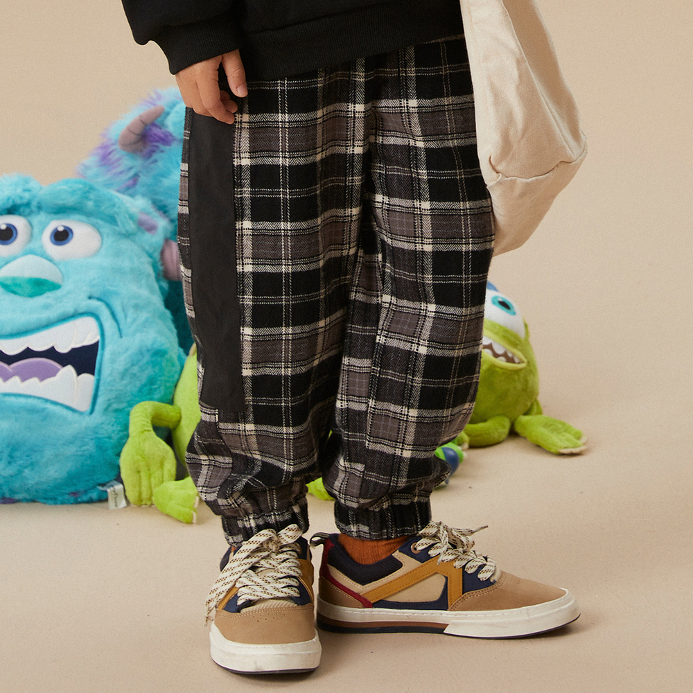 哈伦裤 宝宝舒适花型黑白格纹拼接长裤 男童冬新款 美特斯邦威童装