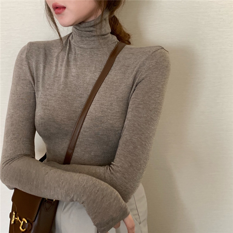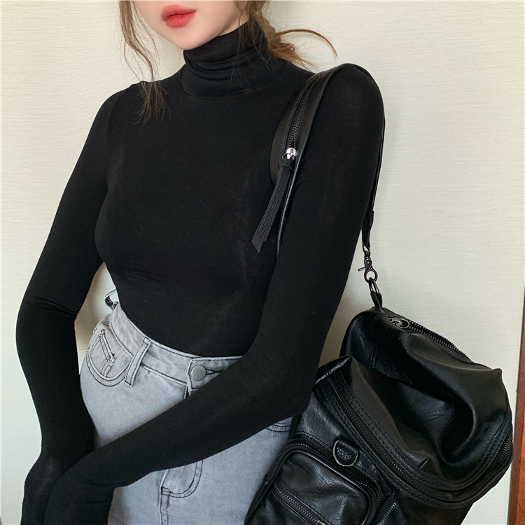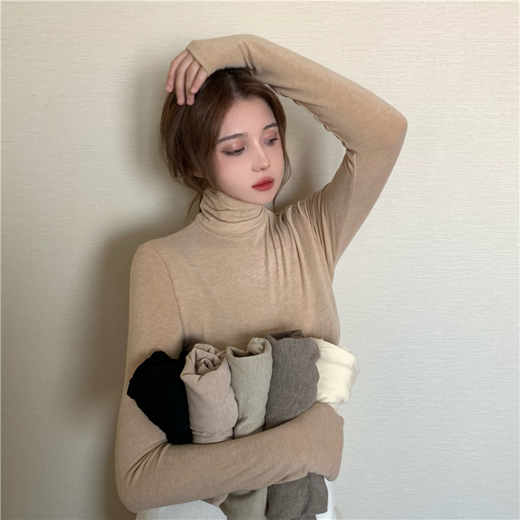女装 新款 高领套头修身 显瘦纯色打底衫 t恤 韩版 长袖 2021秋季
