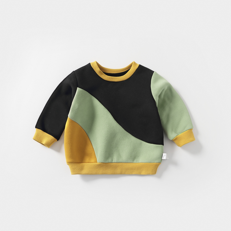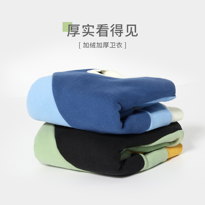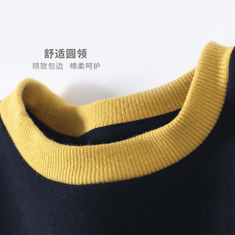 男宝宝加绒卫衣2023秋冬新款 婴儿保暖套头上衣3岁中小童撞色衣服