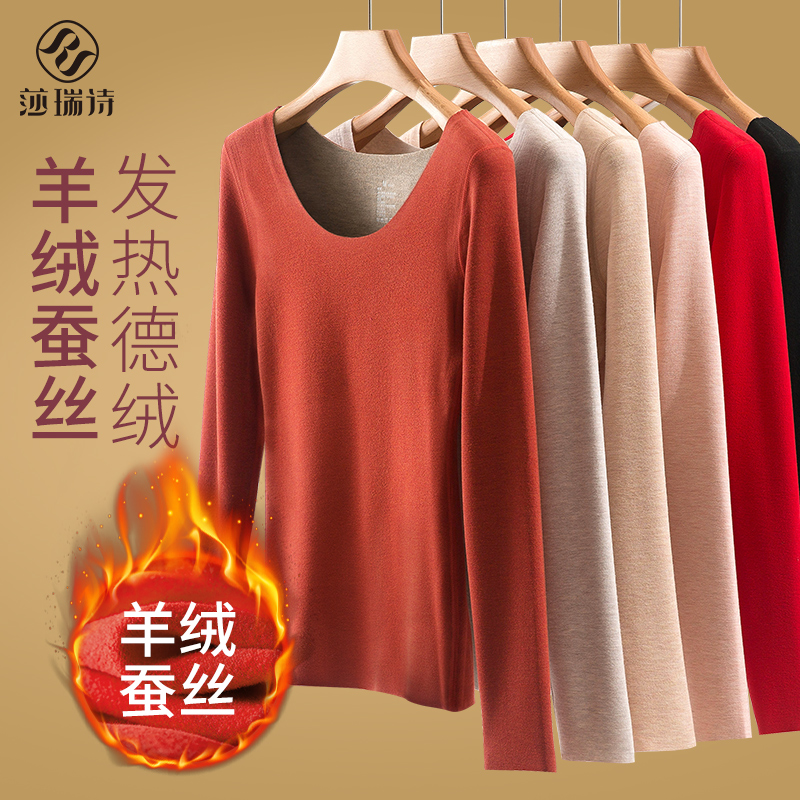套装 上衣加绒加厚秋衣秋裤 新款 羊绒保暖内衣女防寒德绒无痕自冬季
