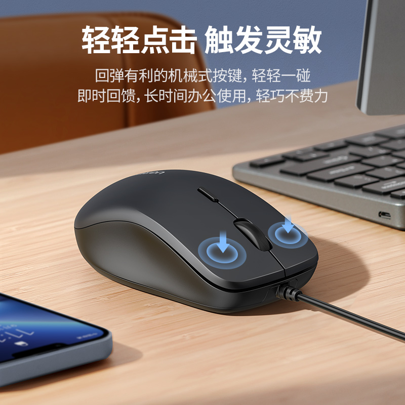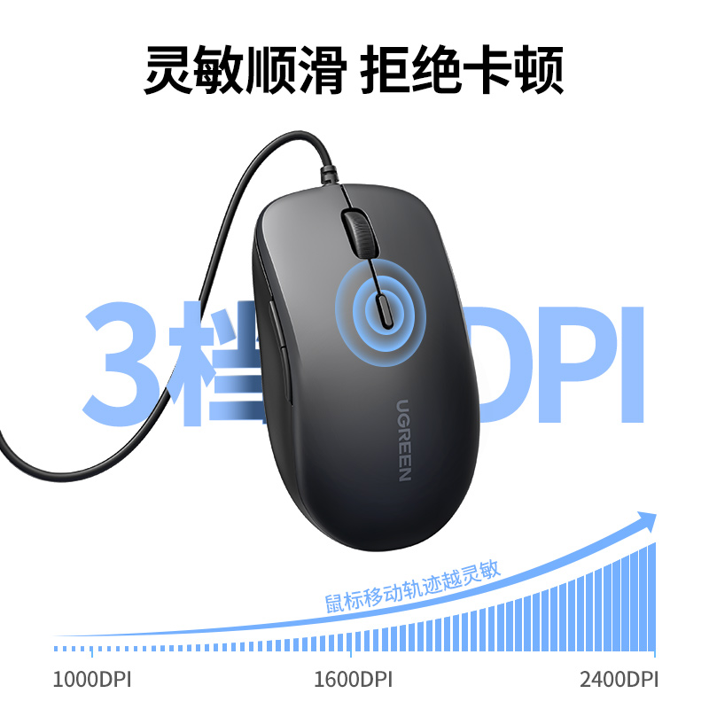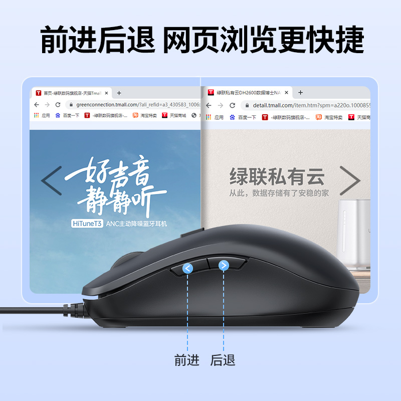 绿联USB鼠标有线商务办公鼠标带侧键适用笔记本台式 电脑鼠标线长