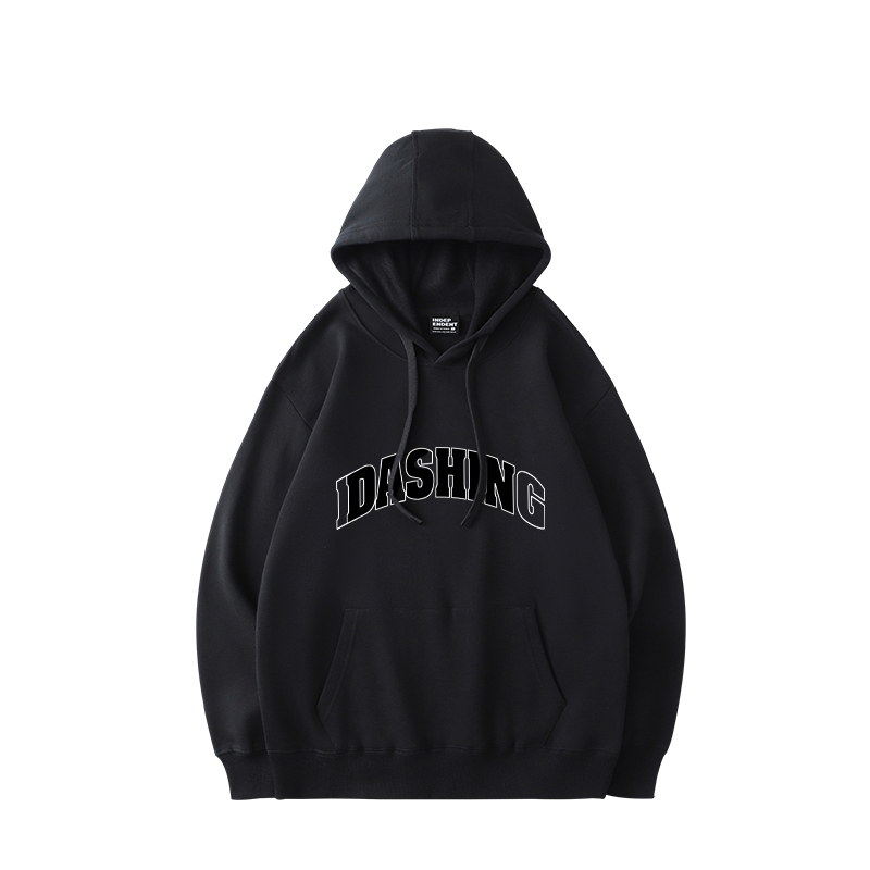 胖mm上衣潮 复古大码 黑色连帽卫衣加绒加厚女冬季 宽松oversize美式