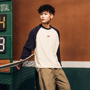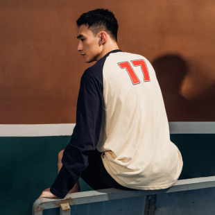 篮球套头上衣 T恤美式 US17潮牌复古撞色拼接插肩袖 运动长袖
