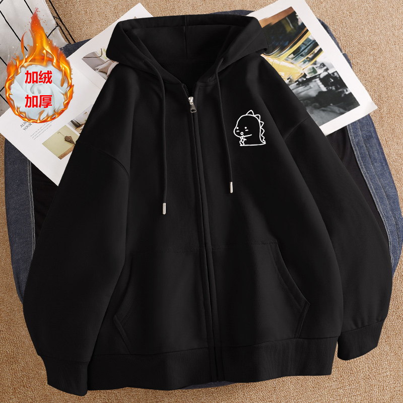 ins潮牌运动情侣加绒加厚拉链夹克外套潮 秋冬季 连帽开衫 卫衣男士