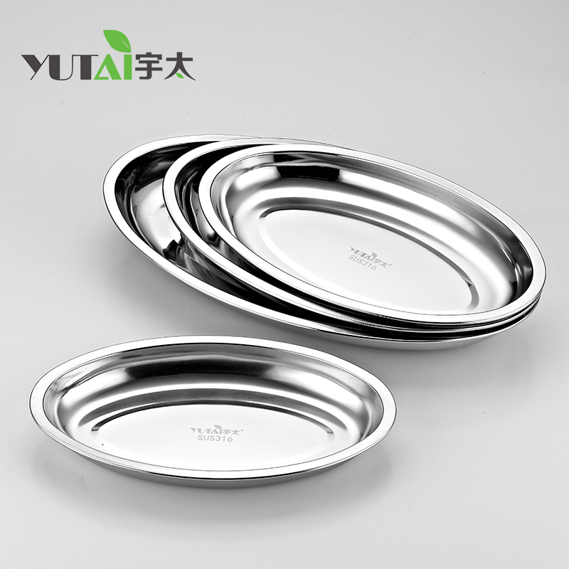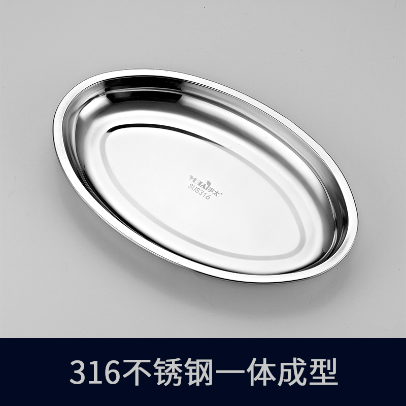 宇太 316不锈钢鱼盘椭圆形盘家用蒸鱼盘子耐高温鱼形碟子蛋形盘子