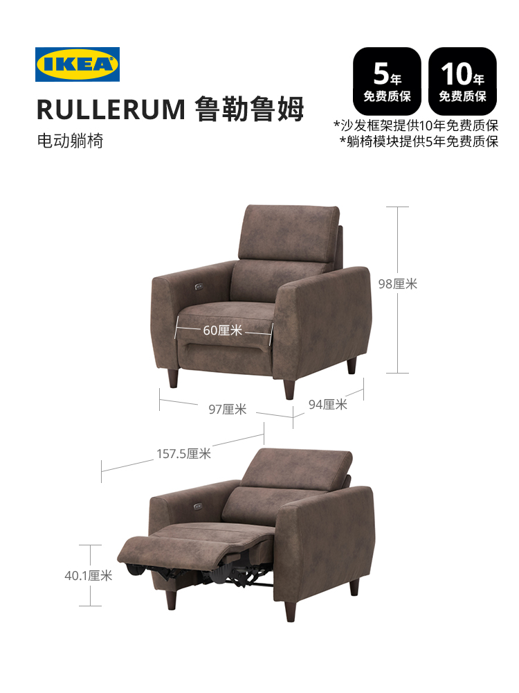 IKEA宜家RULLERUM鲁勒鲁姆客厅家具科技布电动单人沙发舒适躺椅