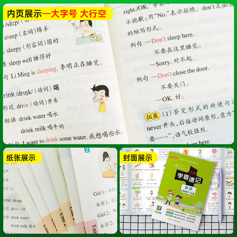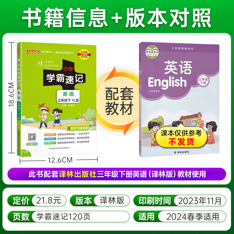 2024春新版 知识点汇总速查速记知识点提要同步解读复习知识点考试前背诵便携工具书PASS绿卡图书 小学学霸速记三年级下册英语译林版