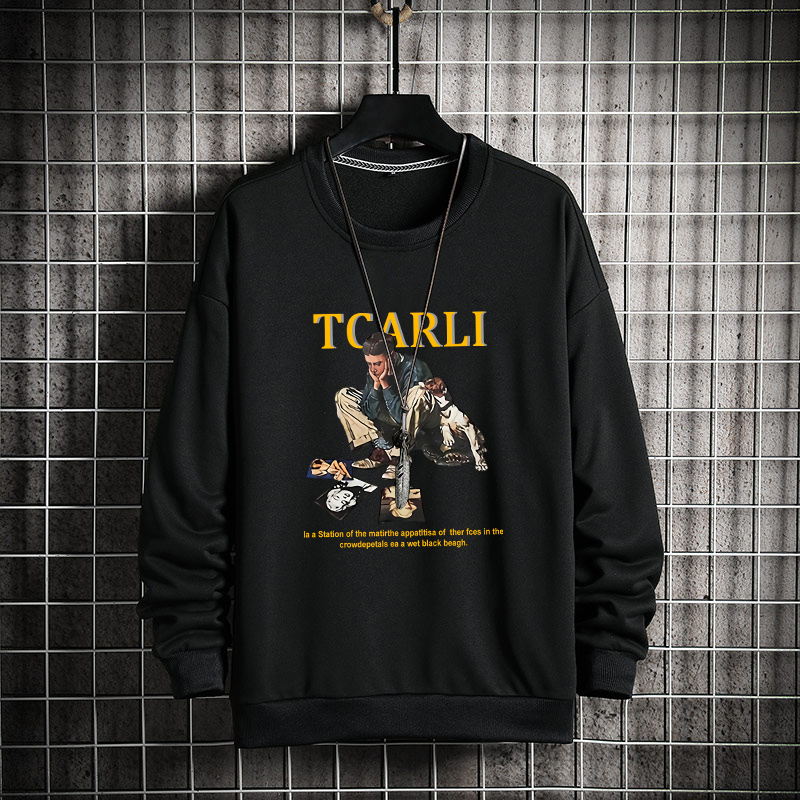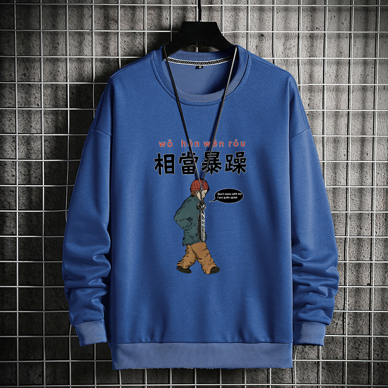 港风套头衫 新款 上衣百搭加绒加厚休闲上衣服男 秋冬季 圆领卫衣男士