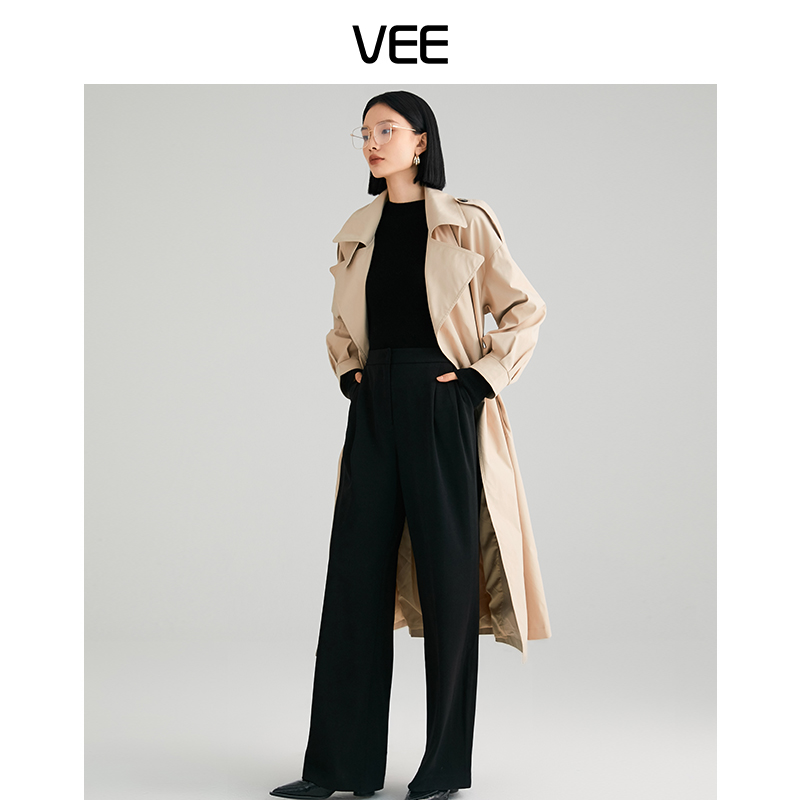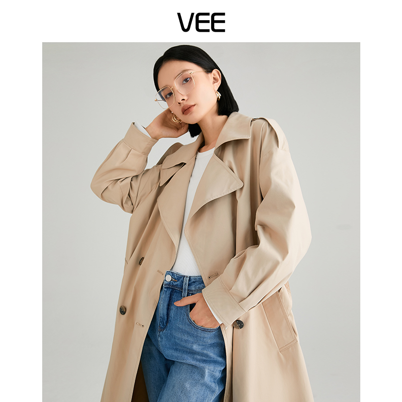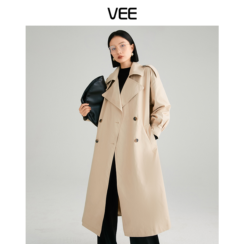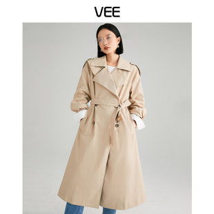 系带收腰中长款 VEE 慵懒双排扣灯笼袖 法式 风衣外套 唯己
