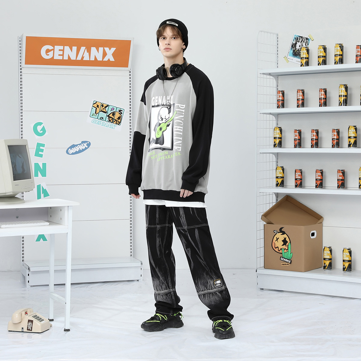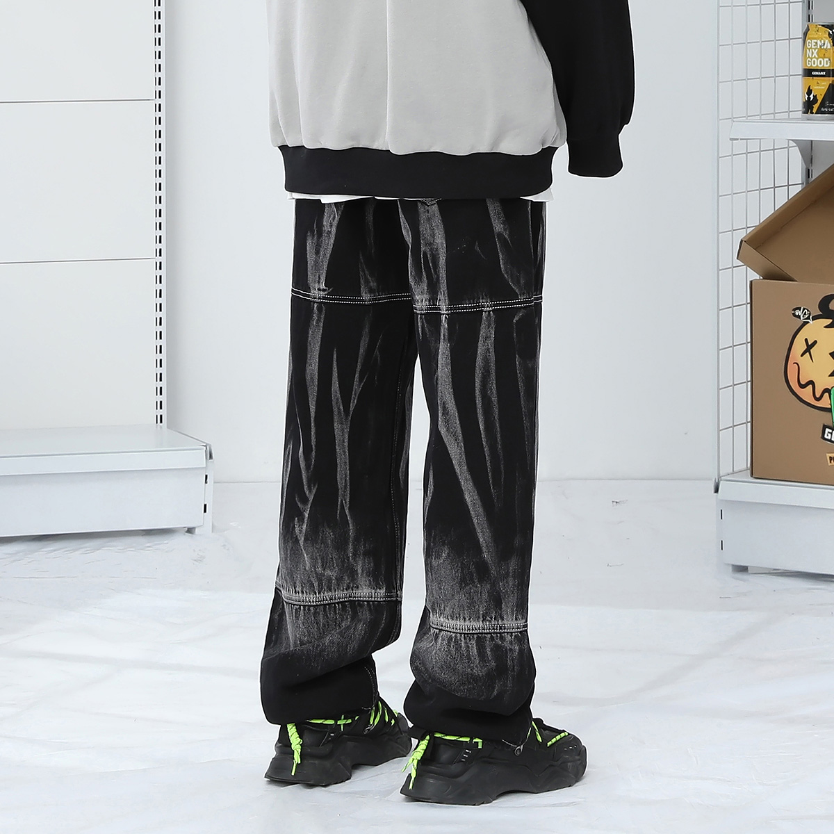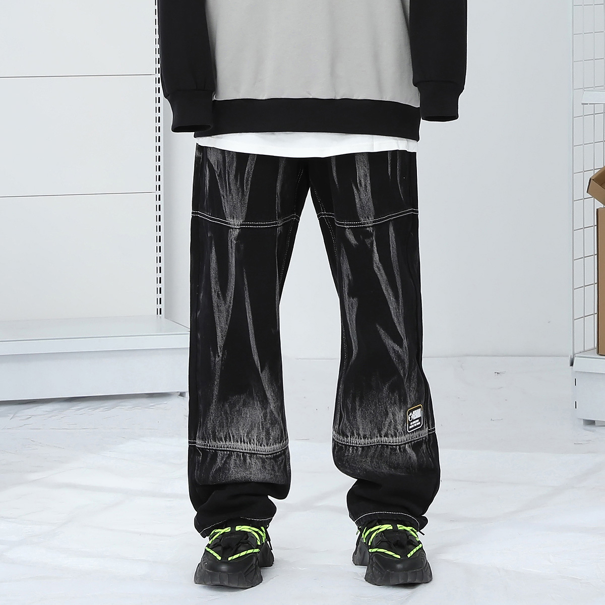 复古宽松直筒水洗牛仔裤 阔腿牛仔裤 男 新款 GENANX闪电潮牌春季