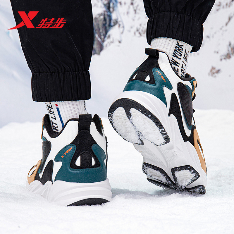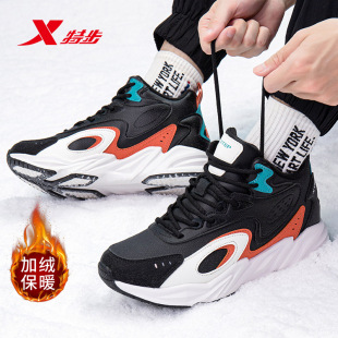 运动鞋 老爹鞋 男士 休闲鞋 官方旗舰 特步男鞋 子加绒保暖棉鞋 秋冬新款