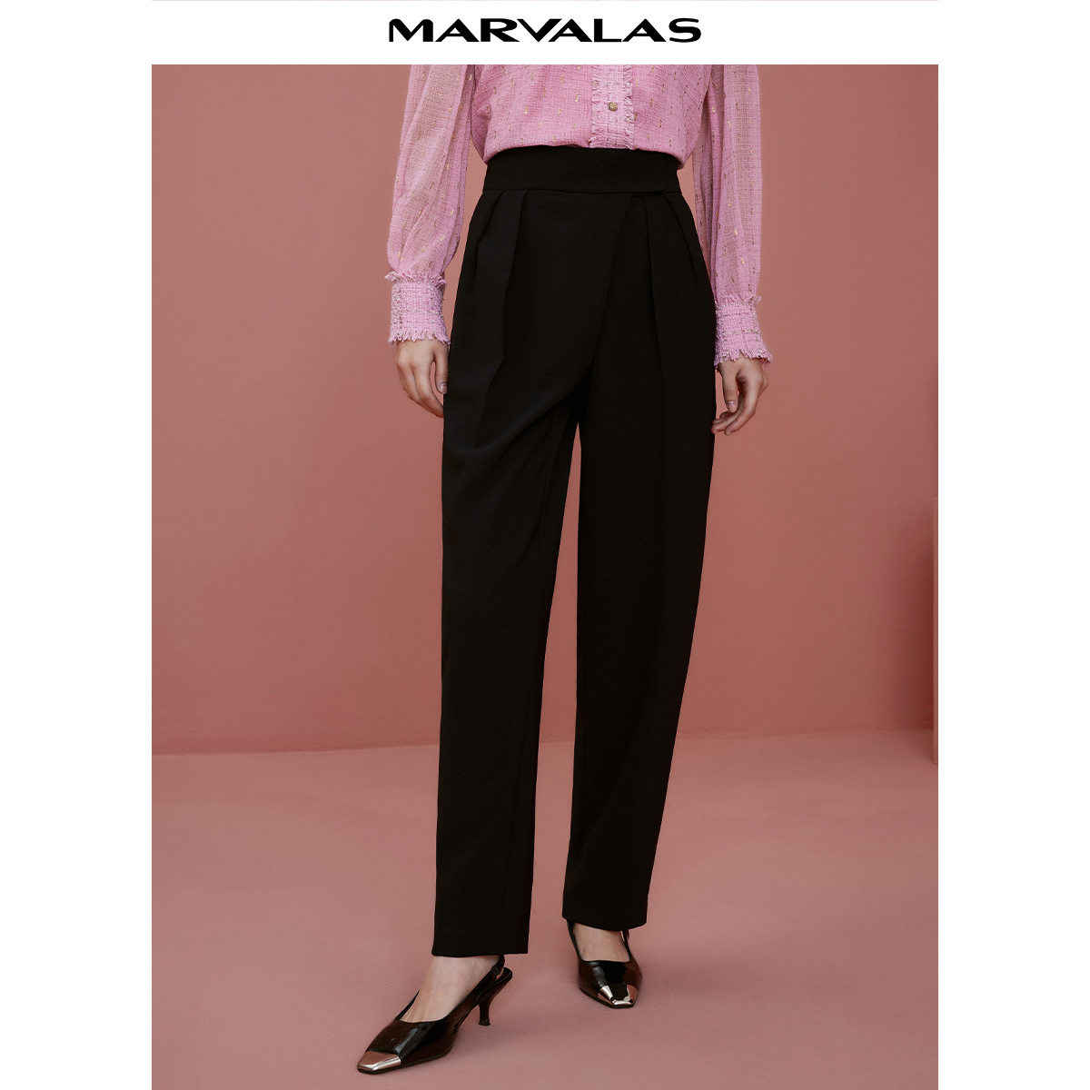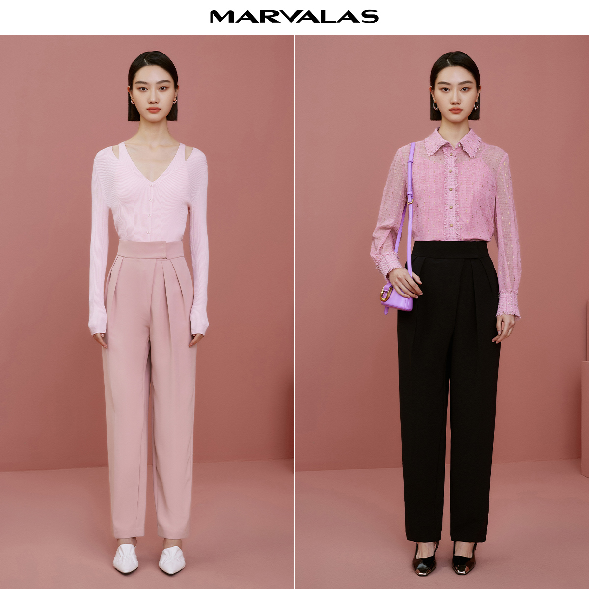 显瘦设计感长裤 双色气质休闲裤 女 2025新款 曼德诗浅粉色高腰哈伦裤