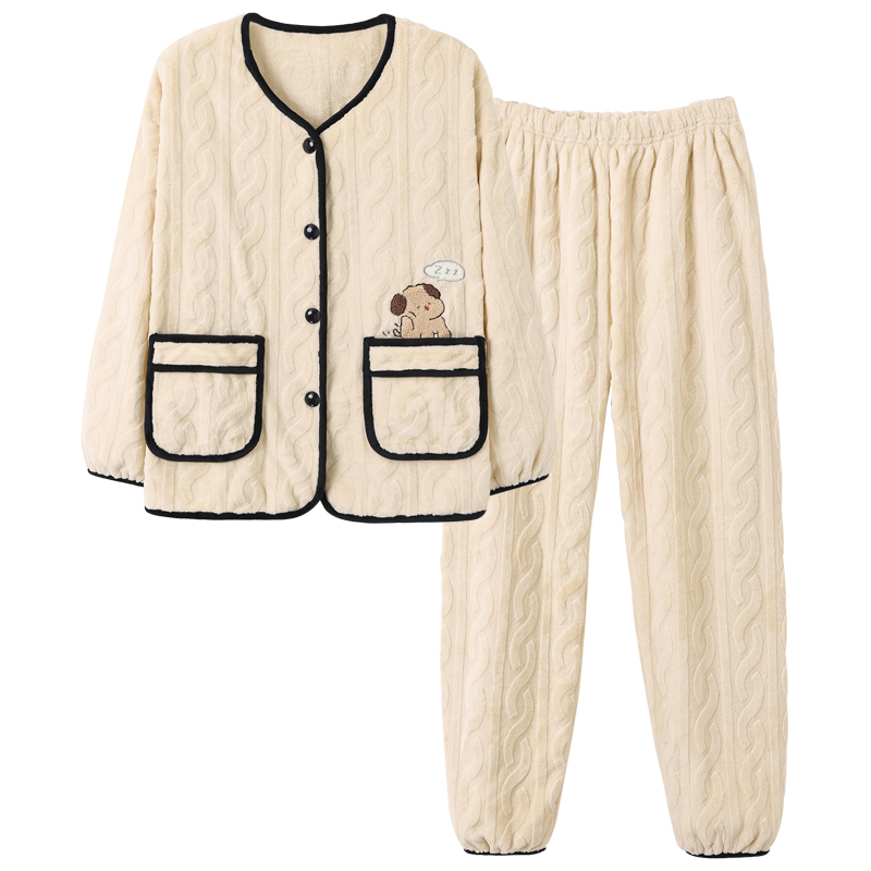 半边绒睡衣女秋冬保暖可爱卡通家居服套装 Gukoo 果壳新款