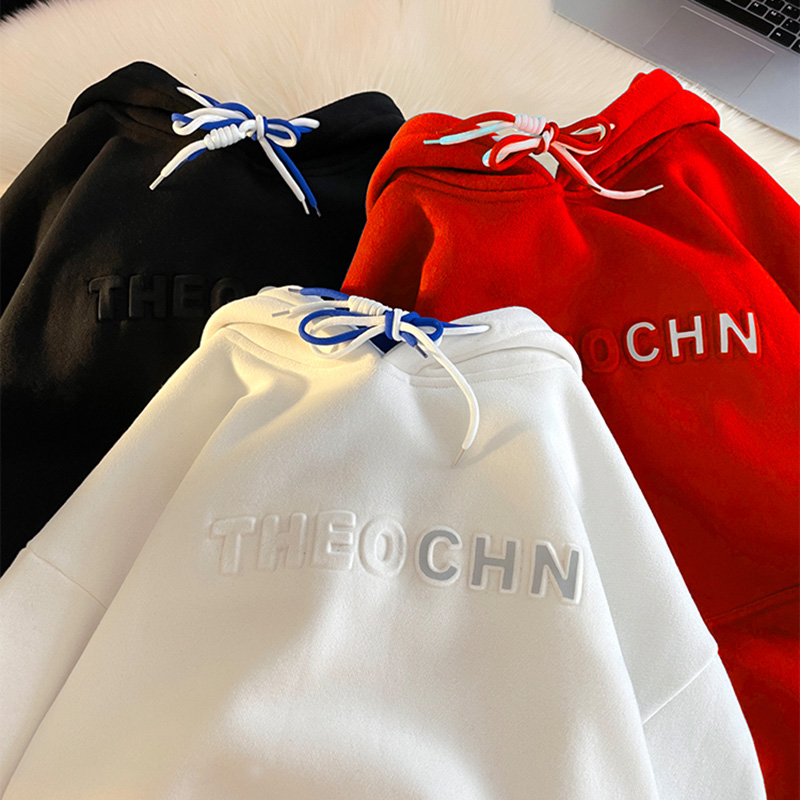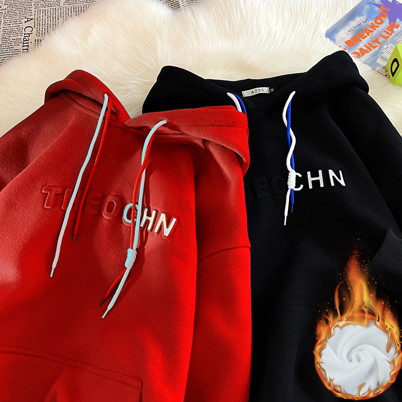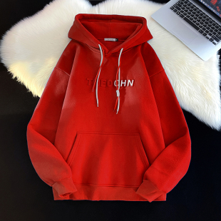 外套oversize重磅连帽衫 本命年大红色卫衣美式 高街男潮硬挺情侣装
