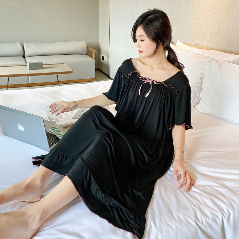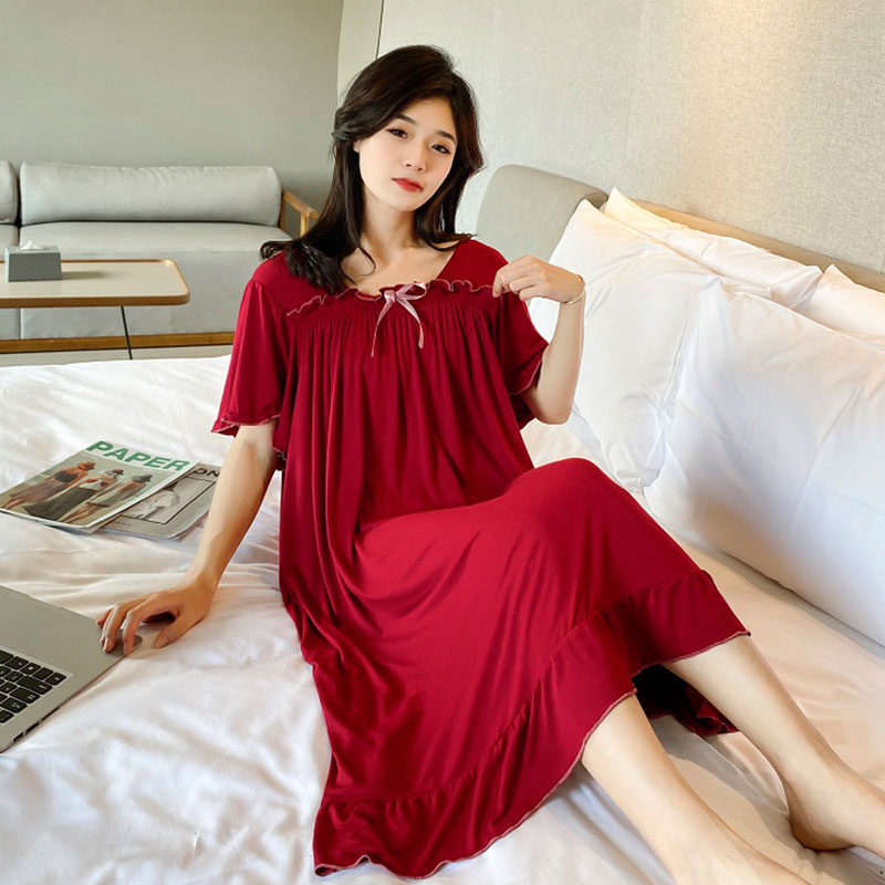 胖mm红色睡衣女本命年大码 结婚睡裙莫代尔孕妇家居裙200斤夏 短袖