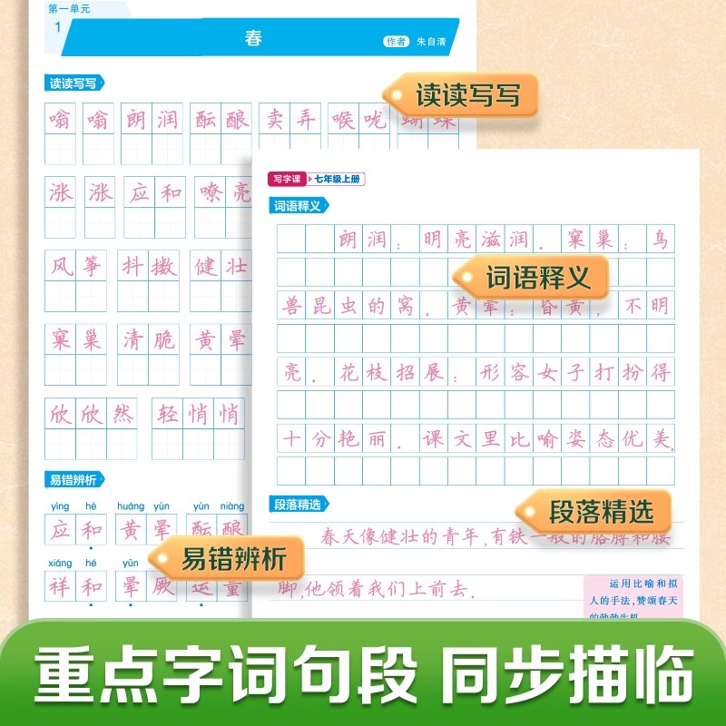 七年级上册八九年级华夏万卷初中写字课专用练字帖语文正楷人教版 2025秋新版 钢笔硬笔描红临写每日一练 初中生语文同步练字帖