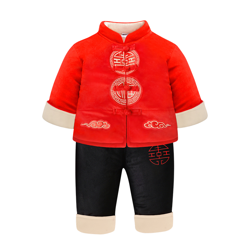 红色男童新中式 男宝秋冬套装 一周岁礼服生日男孩抓周衣服婴儿唐装