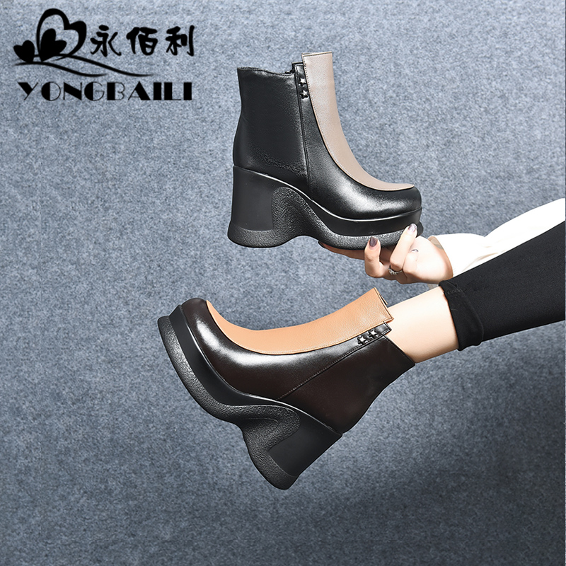 黑色增高靴子女时尚 新款 休闲皮面短靴 2025秋季 环球厚底马丁靴女款
