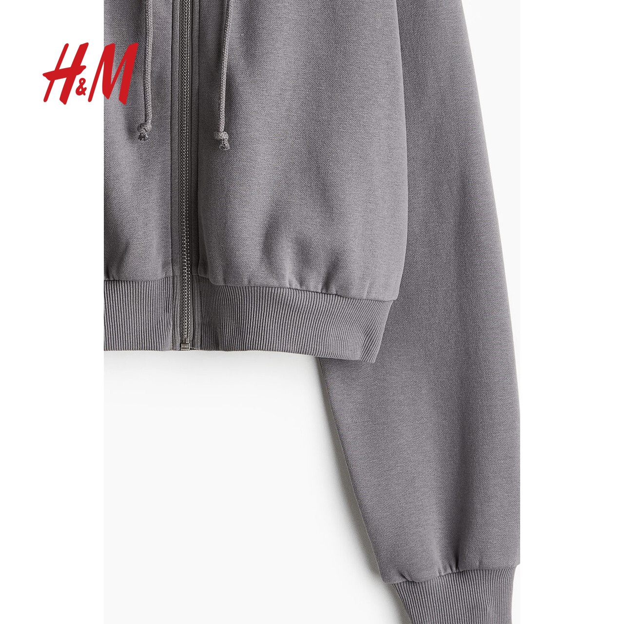 时尚 新款 休闲长袖 宽松短款 1193900 HM女装 拉链连帽衫 卫衣2025秋季