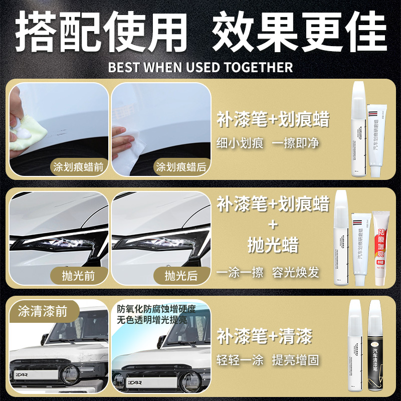 奇瑞iCARV23补漆笔白色黑色汽车原厂专用车漆划痕修复神器改装 件