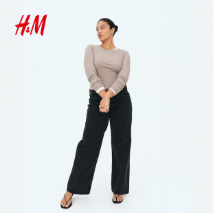 T恤2025秋季 棉质长袖 新款 简约气质修身 圆领上衣1266888 时尚 HM女装