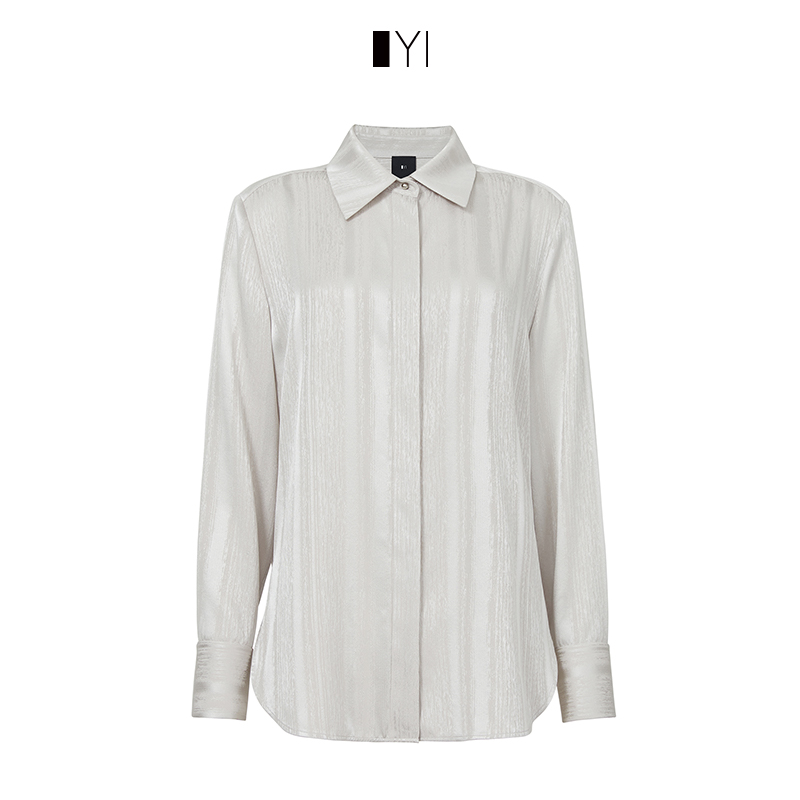 衬衫 月影灰6A桑蚕丝桑波缎直身通勤长袖 上衣 2025早春新款 YI衣臻