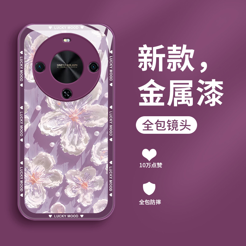 适用华为畅享70X手机壳新款 钢化玻璃镜面保护套BRE一AL80镜头全包防摔硬壳女生网红创意浮雕花 畅想70x活力版