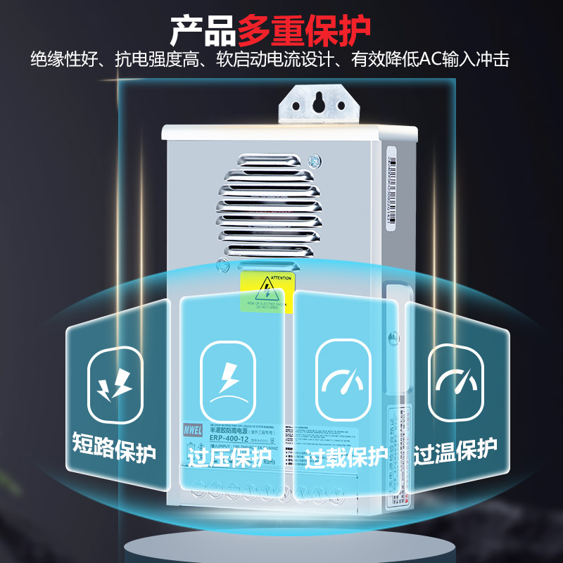 漫威ERP 12V33A半灌胶防雨开关电源24V灯带发光字变压适配器 400W