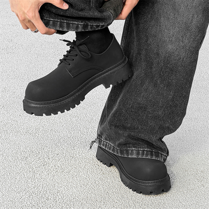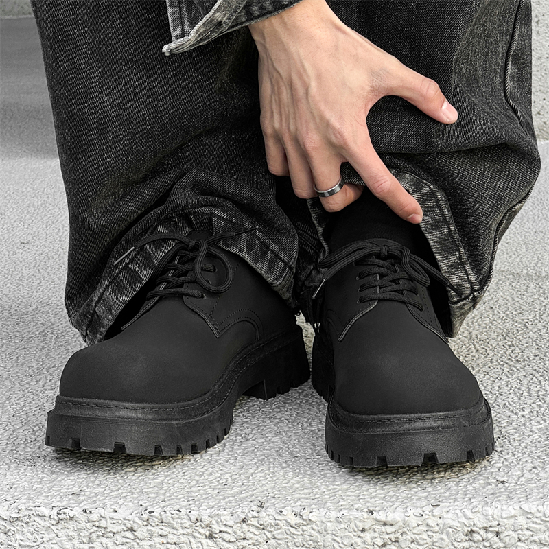 男款 通勤马丁靴厚底增高休闲皮鞋 圆头大头鞋 鞋 黑色工装 MRA德比鞋