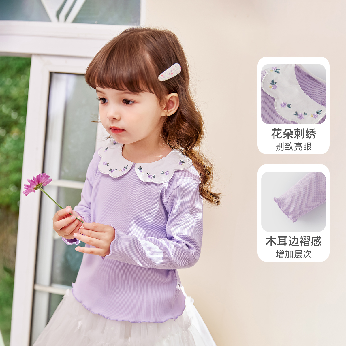 小童白色秋款 女孩秋季 女童娃娃领上衣 春秋3岁宝宝秋装 儿童T恤长袖