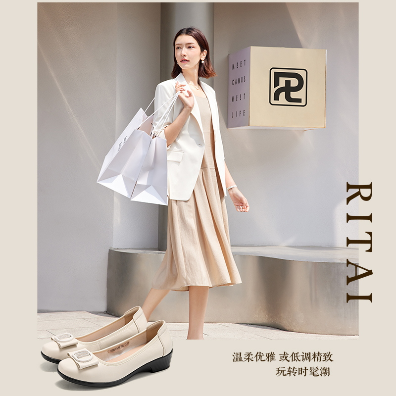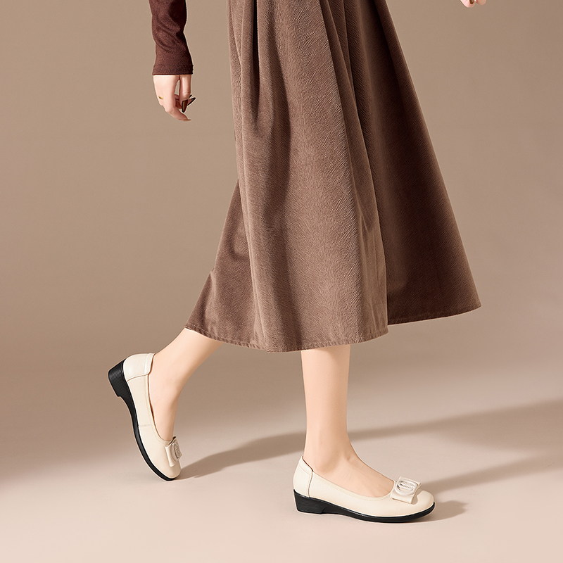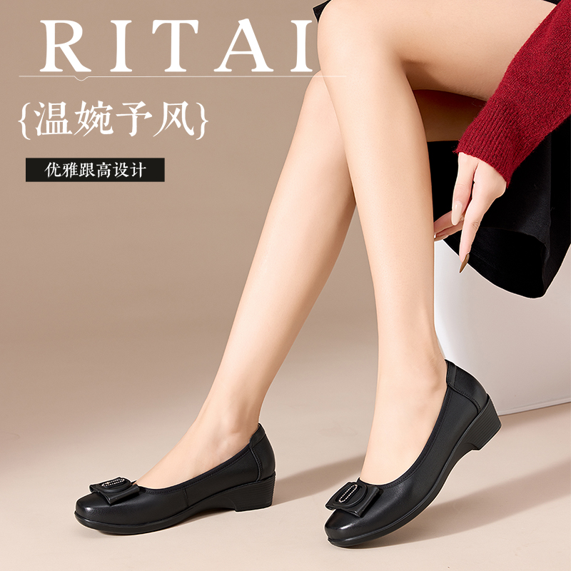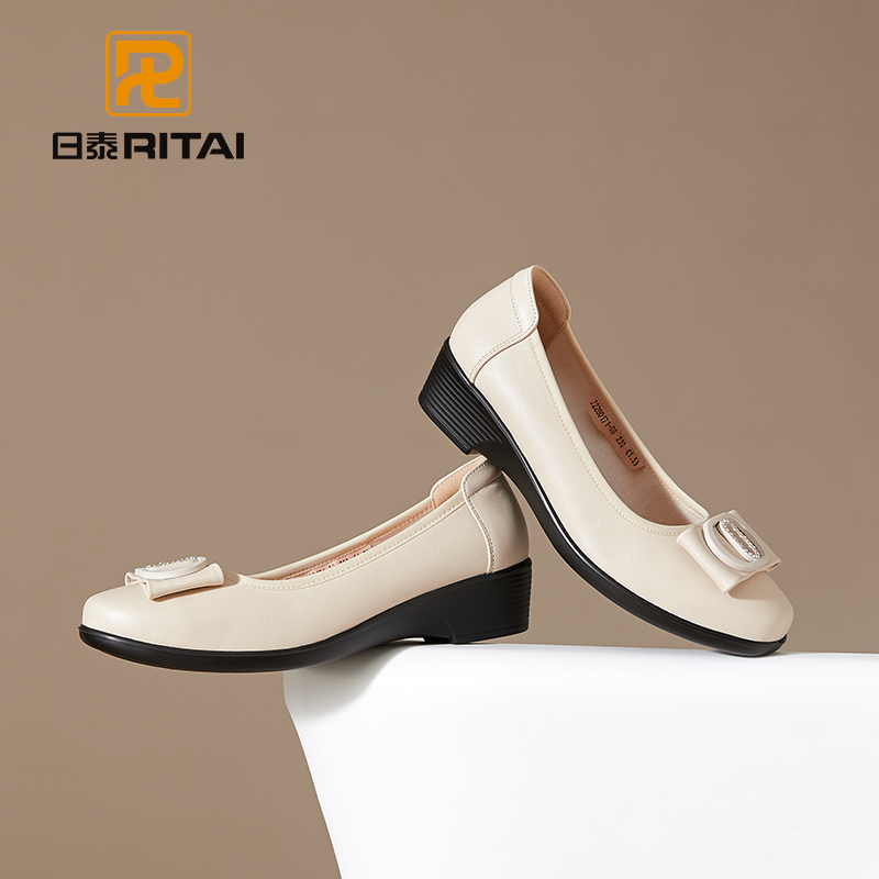 春夏季 通勤女鞋 新款 头层牛皮软底浅口妈妈鞋 舒适工作鞋 日泰女单鞋