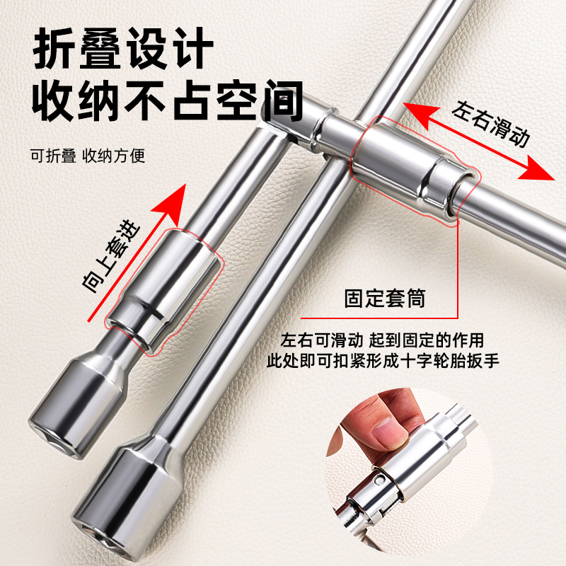汽车折叠轮胎扳手省力拆卸工具便携六角十字套筒维修工具防滑手柄