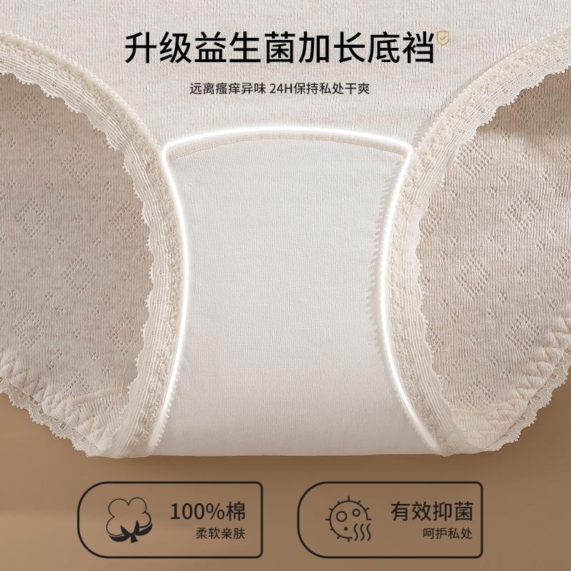 女士纯棉中腰女生内裤 不夹臀抗菌内裤 三角裤 新款 短裤 全棉时代内裤