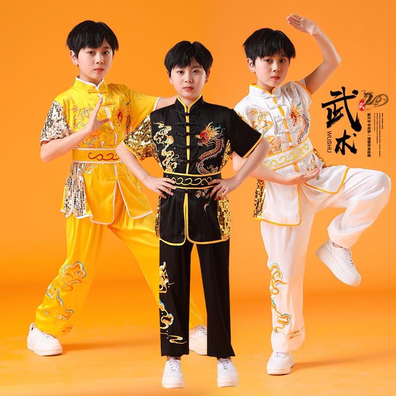 儿童刺绣武术表演服装 竞赛比赛服中小学生武馆中国功夫训练演出服