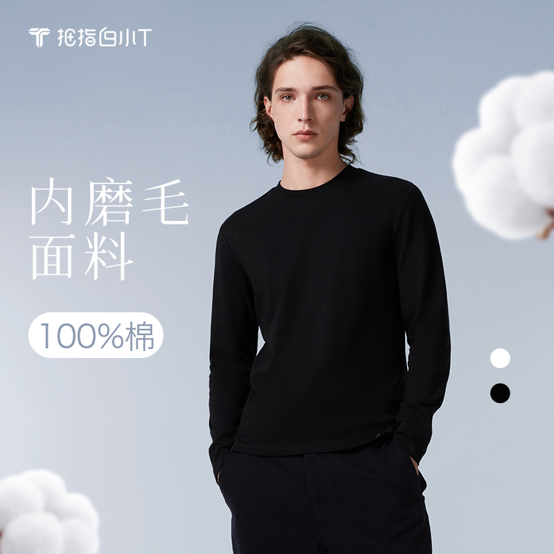 纯色内搭 舒适时尚 拇指白小T磨毛保暖长袖 T恤男女上衣秋冬打底衫