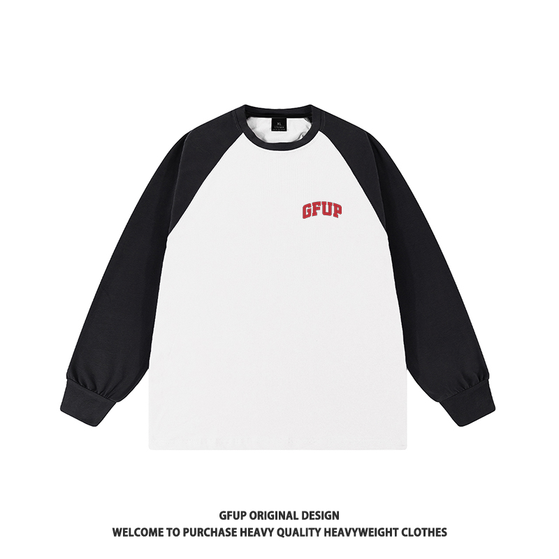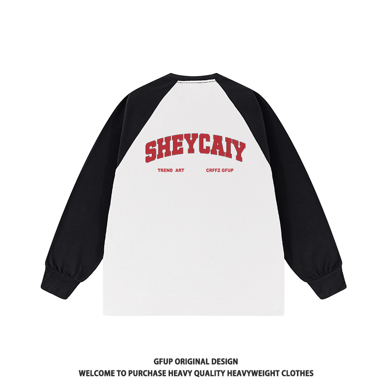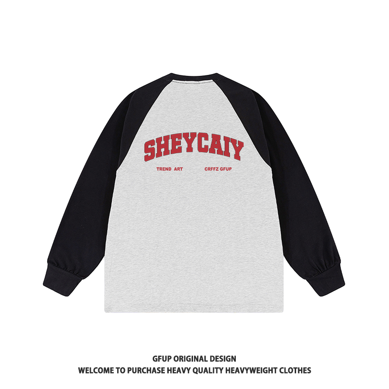 T恤2025新款 圆领插肩长袖 纯棉青少年高街痞帅上衣 重磅美式 春秋款