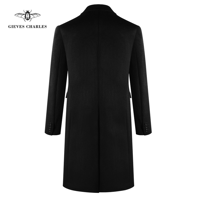 韩版 长款 呢子加厚风衣外套 2025春秋季 V37黑色高级感毛呢大衣男款