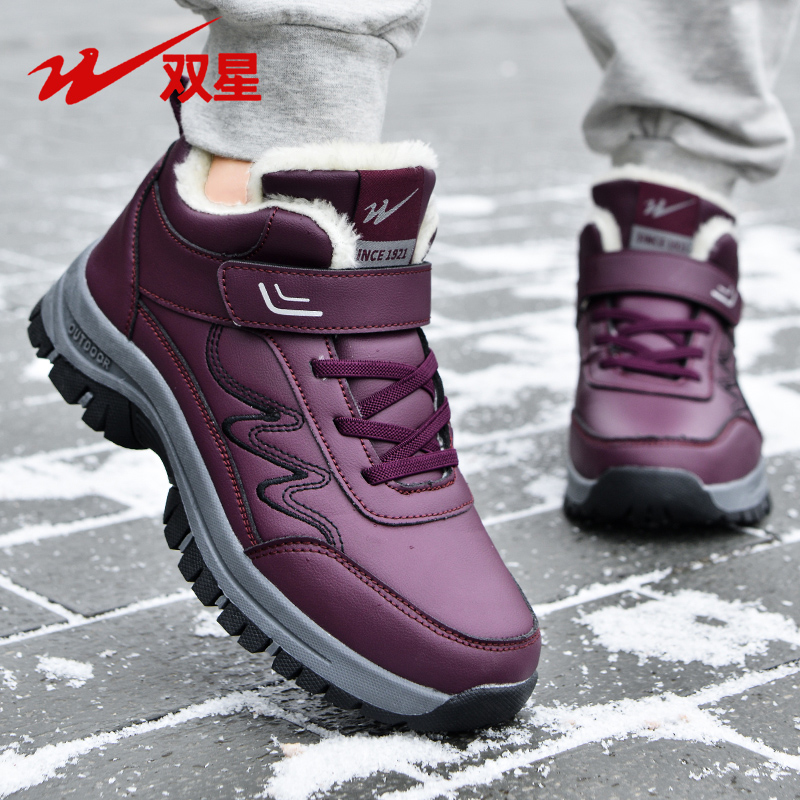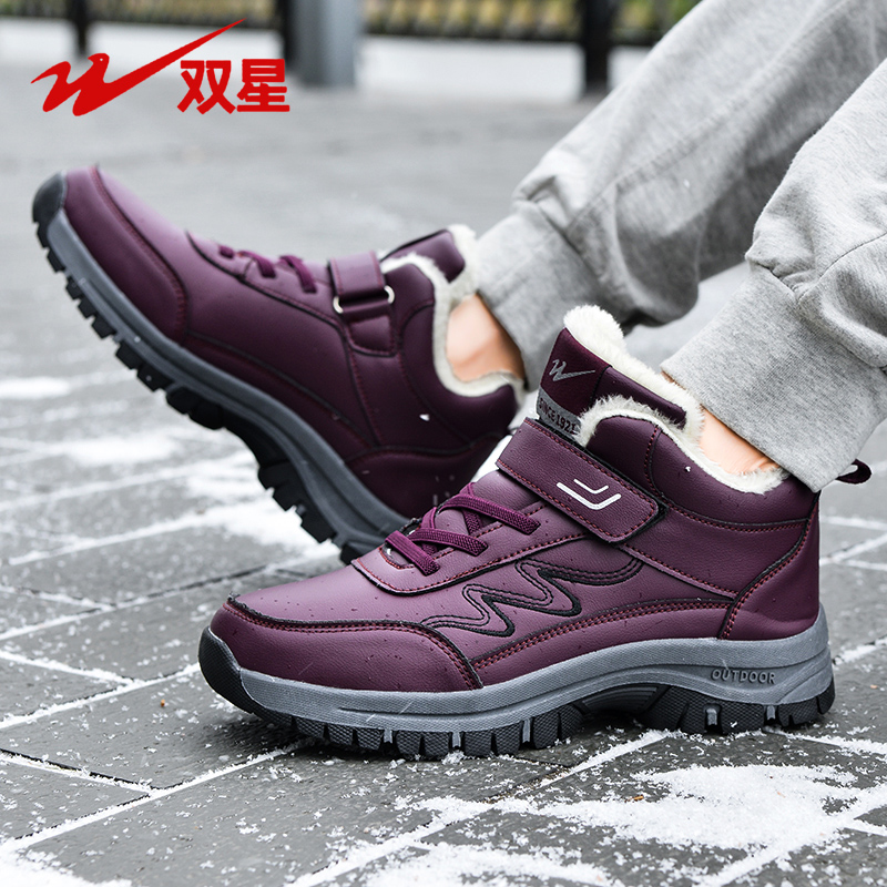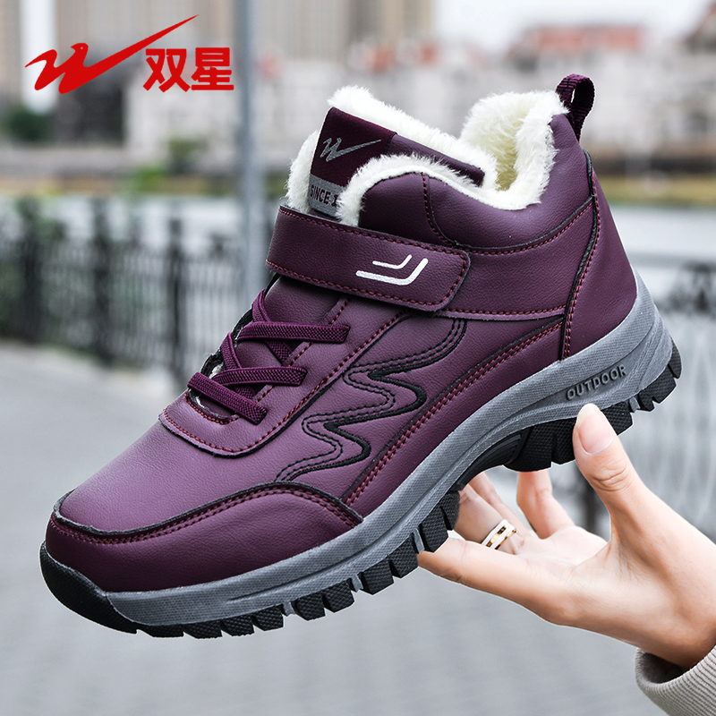 中老年加厚保暖休闲运动鞋 加绒妈妈棉鞋 雪地靴 女冬季 双星老人鞋