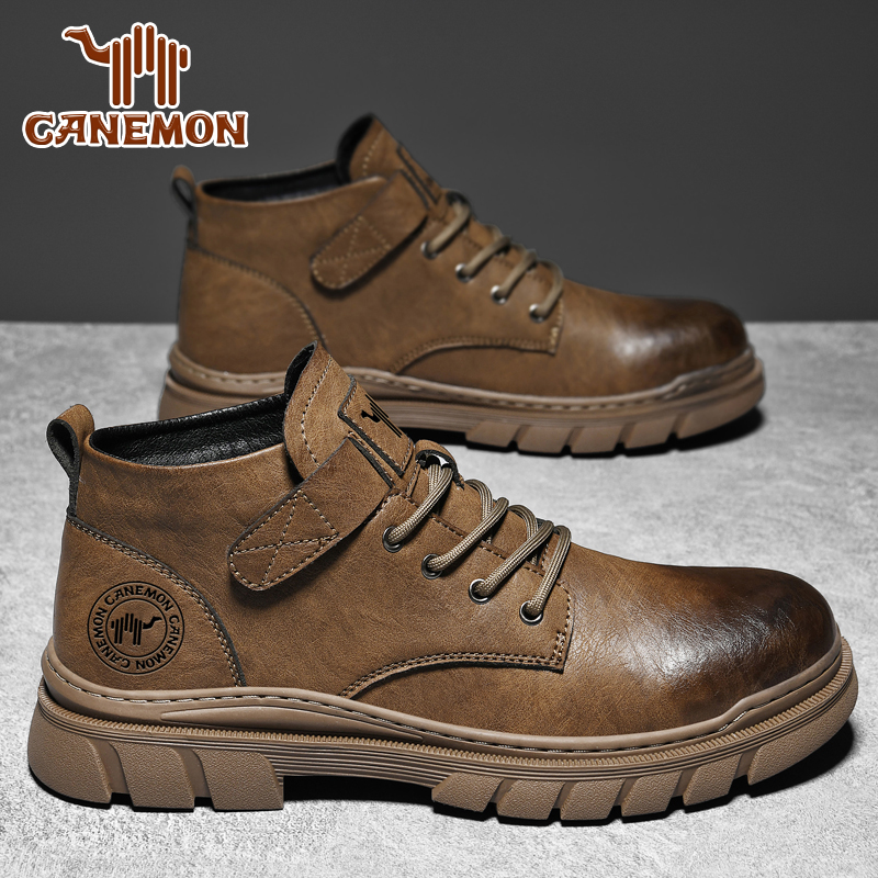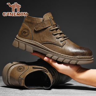 工装 复古英伦男士 靴加绒加厚保暖高帮棉靴 马丁靴男款 保罗骆驼冬季