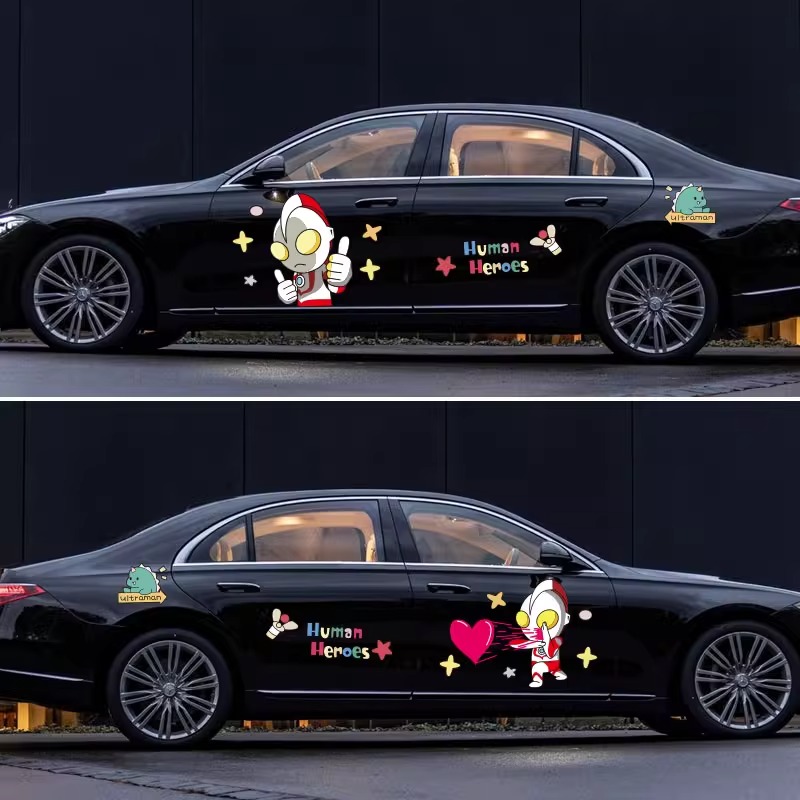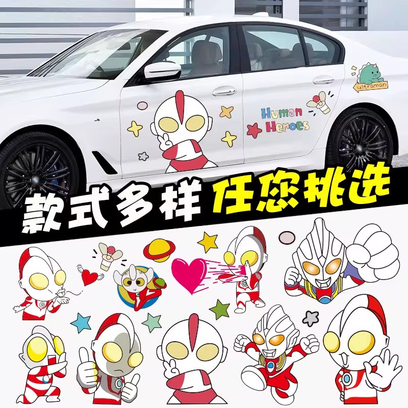 奥特曼车贴汽车贴纸卡通创意划痕遮挡改装 两侧拉花 车身贴创意个性