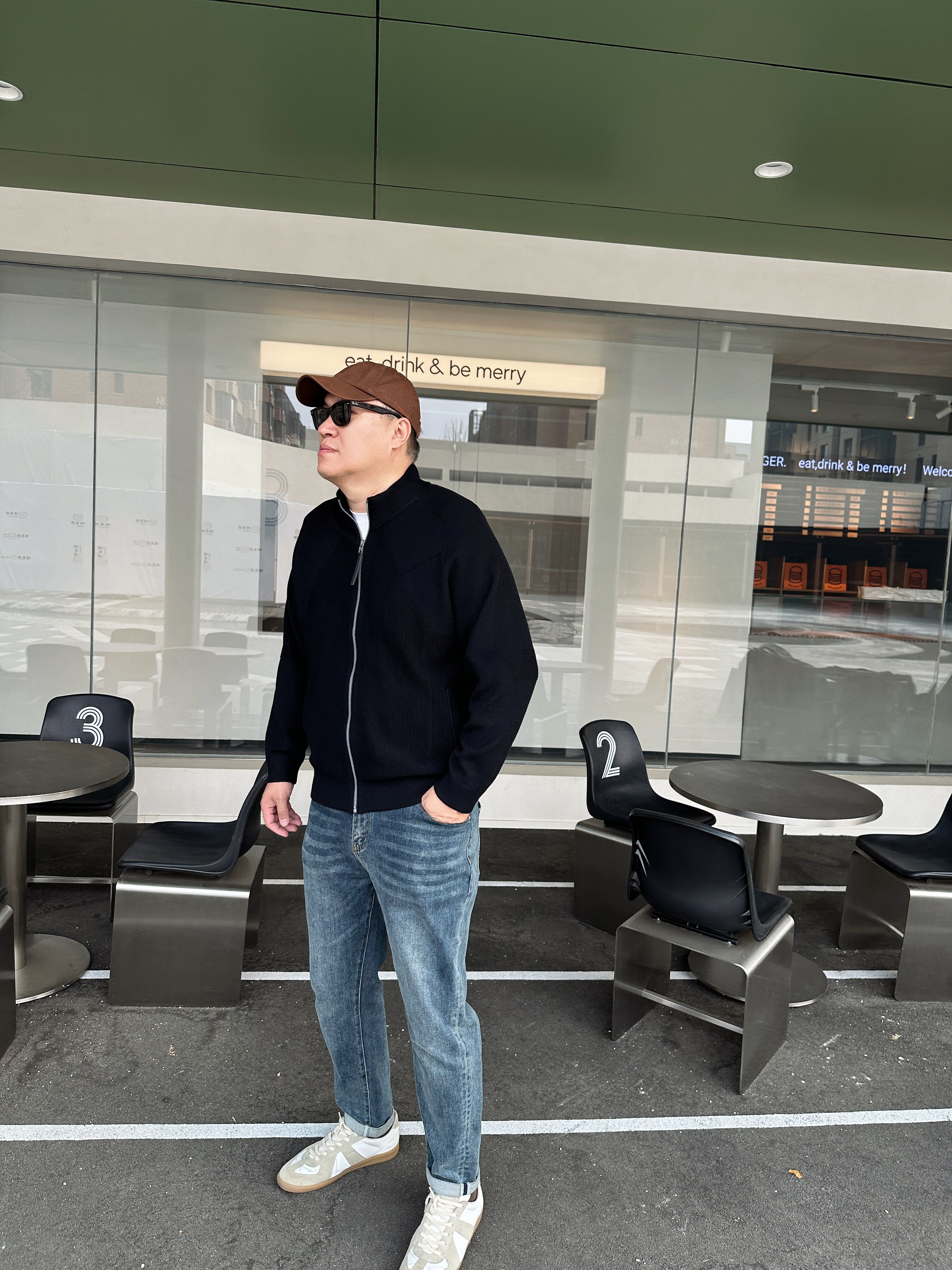 URSBOB秋冬男士 高级感外穿 毛衣宽松连帽套头纯色毛线衣青年针织衫