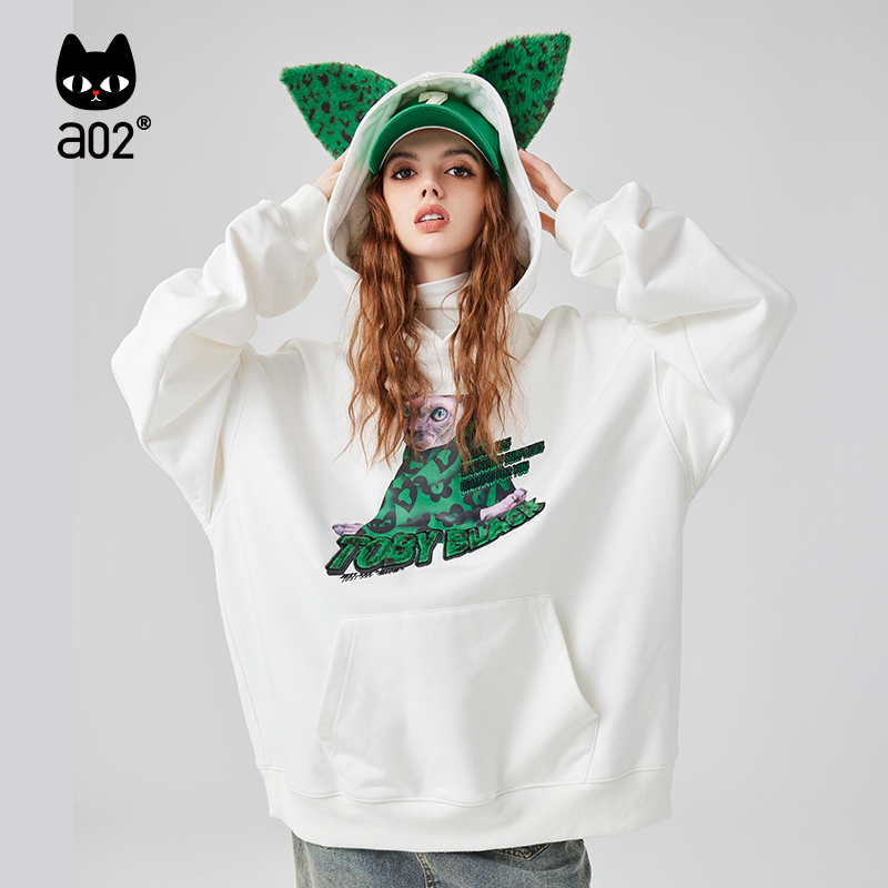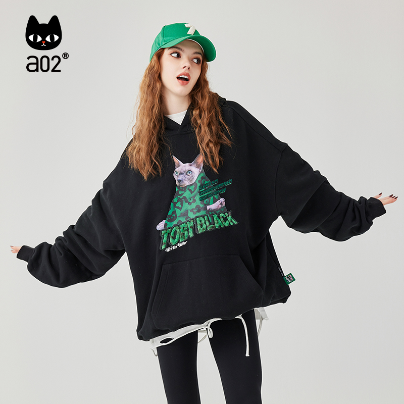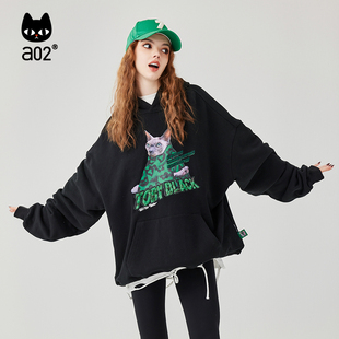 卫衣 带帽长袖 a02潮流印花2025冬季 甜酷慵懒随性可调节加绒宽松版
