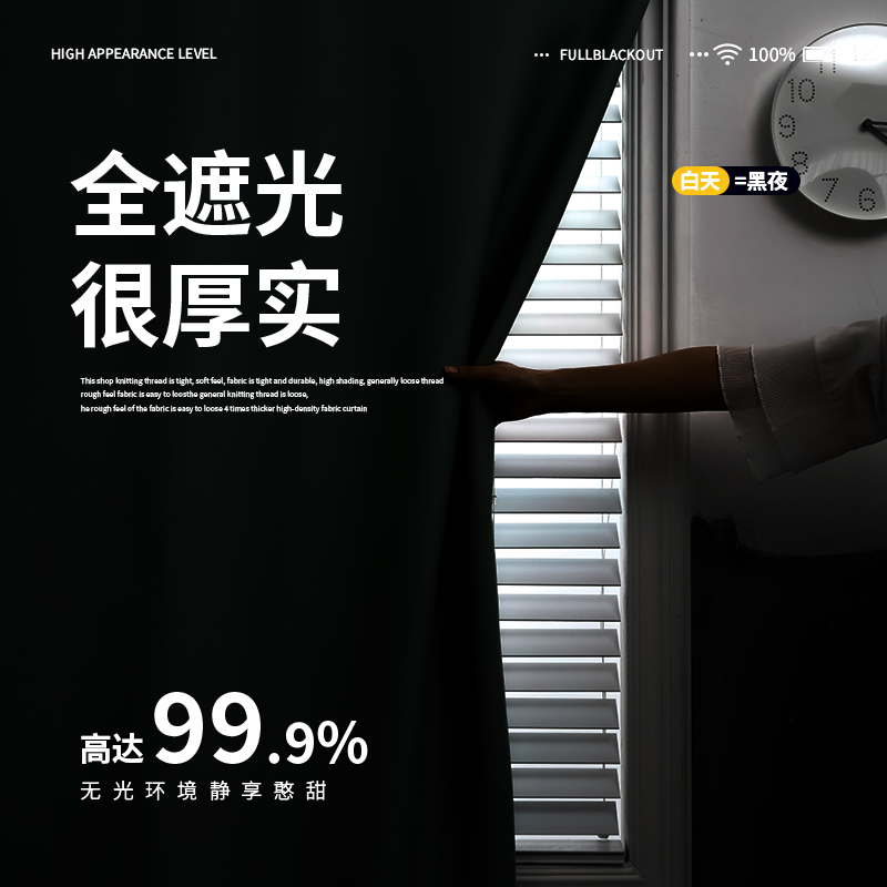 出租房飘窗 简易粘贴式 全遮光魔术贴窗帘布2023新款 遮阳免打孔安装