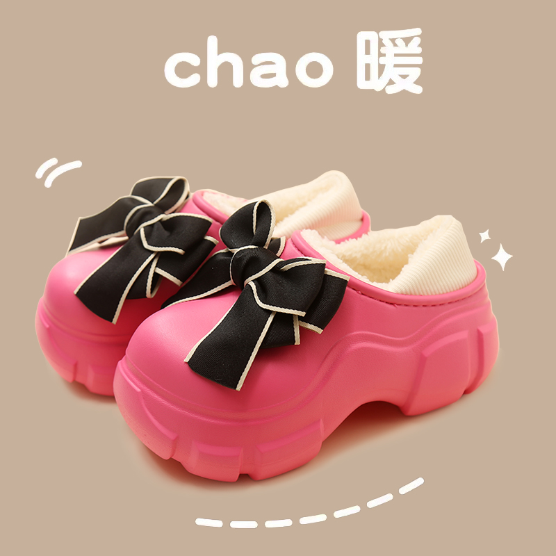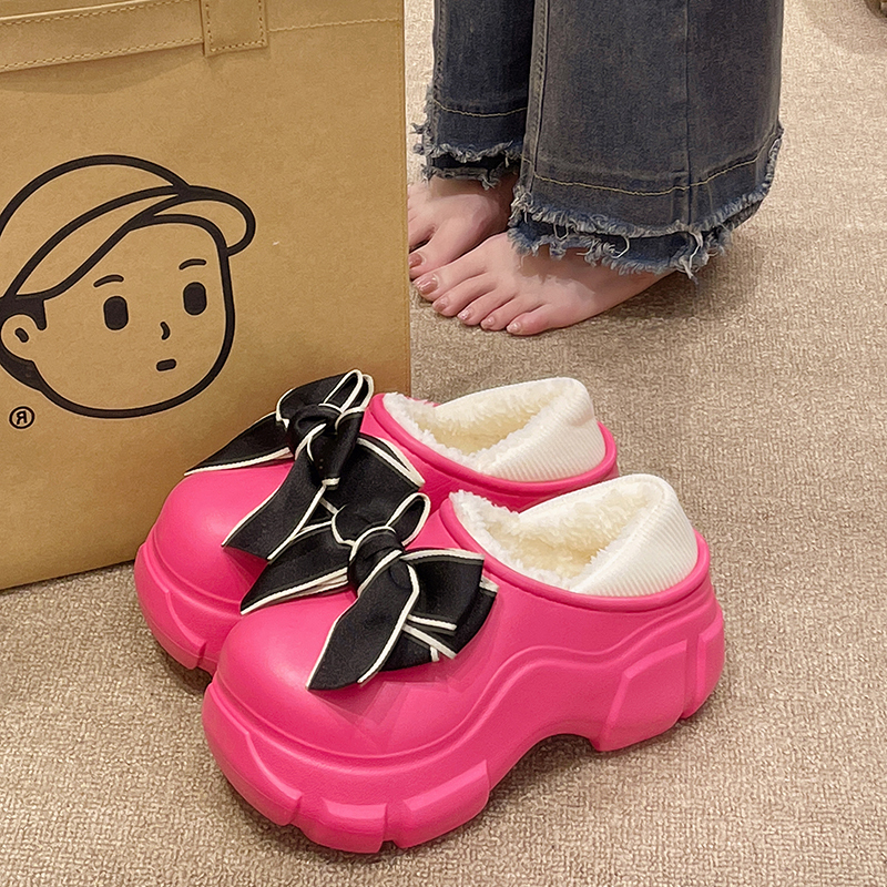 室内家居用厚底踩屎感棉拖 2025新款 蝴蝶结毛毛绒棉拖鞋 女士秋冬季