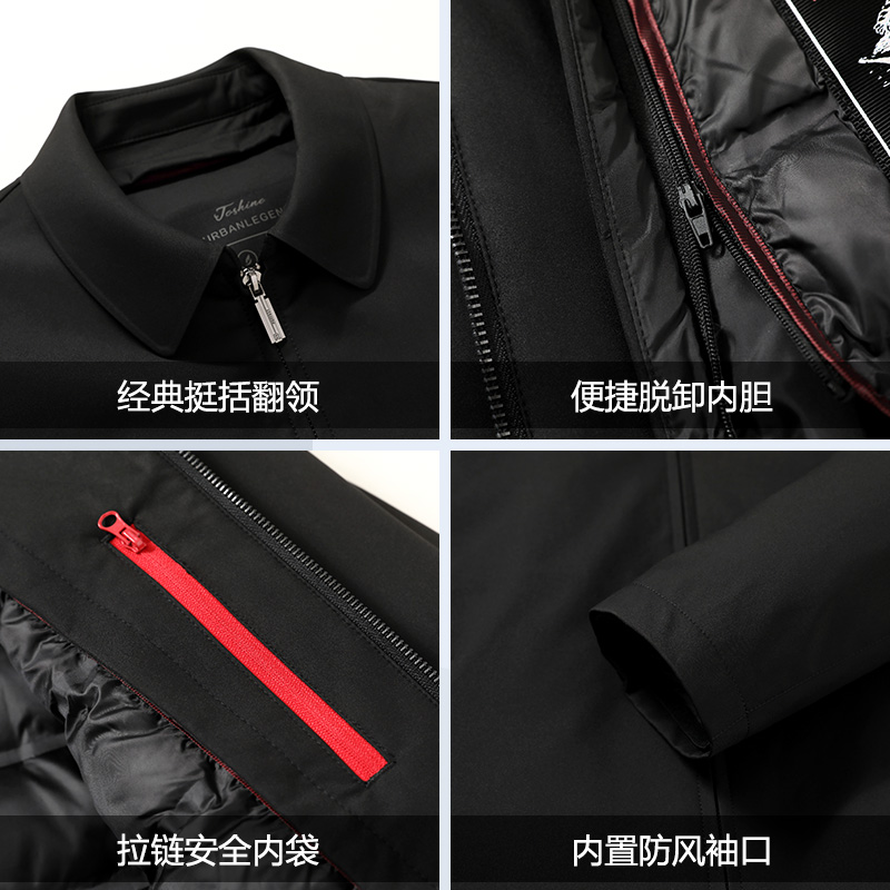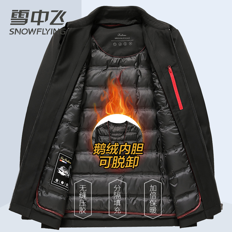冬季 内胆可脱卸鹅绒服翻领爸爸装 外套 羽绒服短款 雪中飞中老年男士