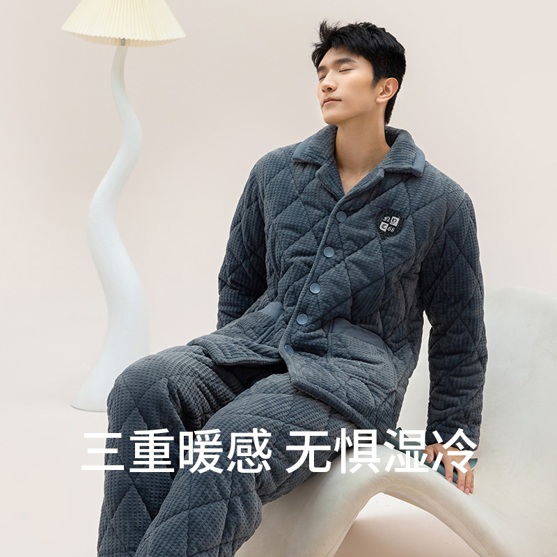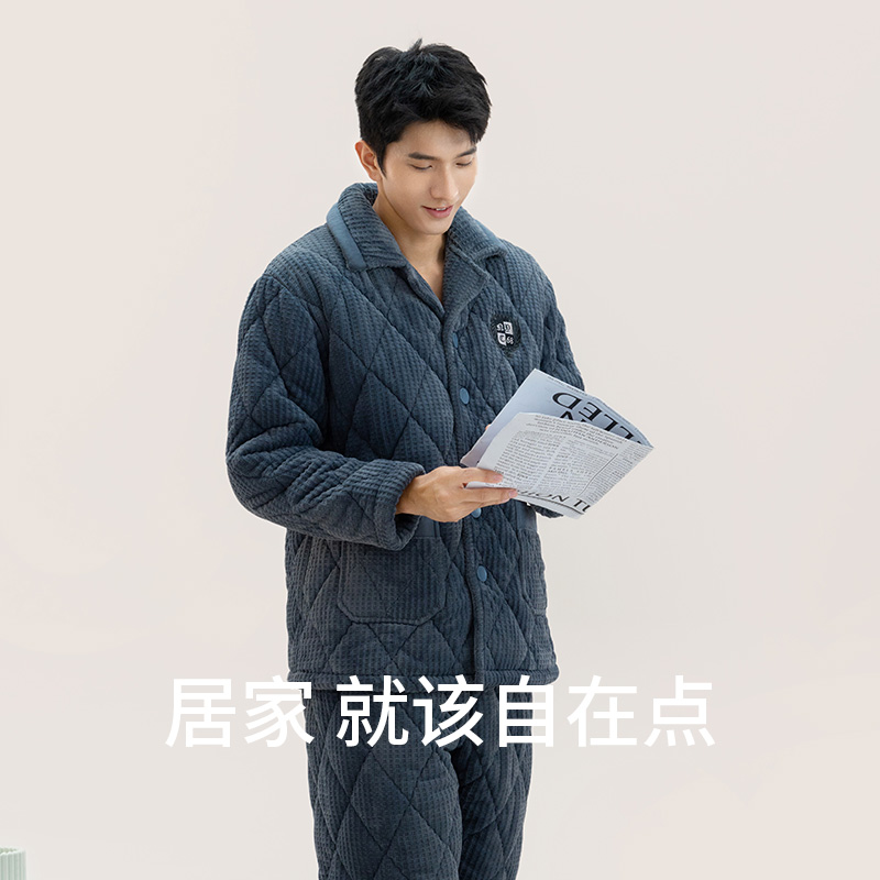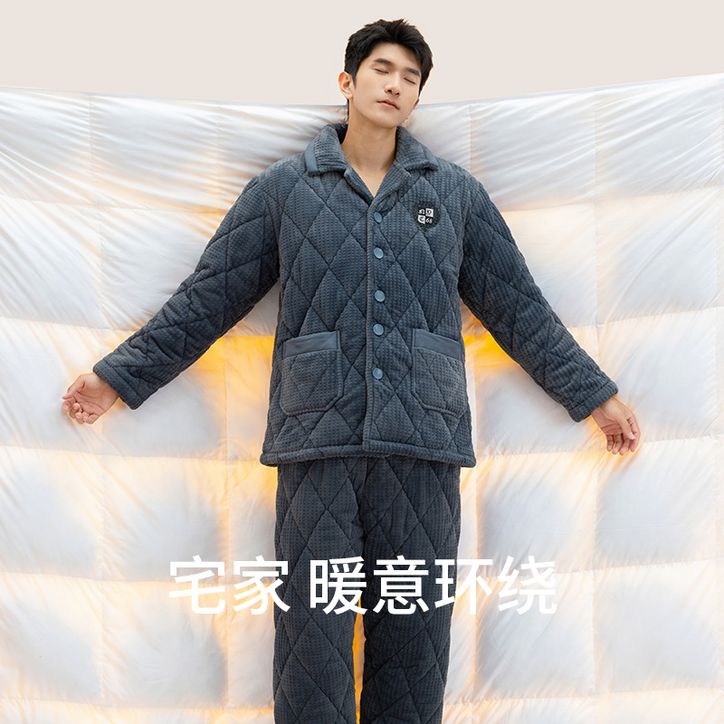 保暖男士 秋鹿珊瑚绒夹棉睡衣男冬季 立即预订 家居服 双11预售