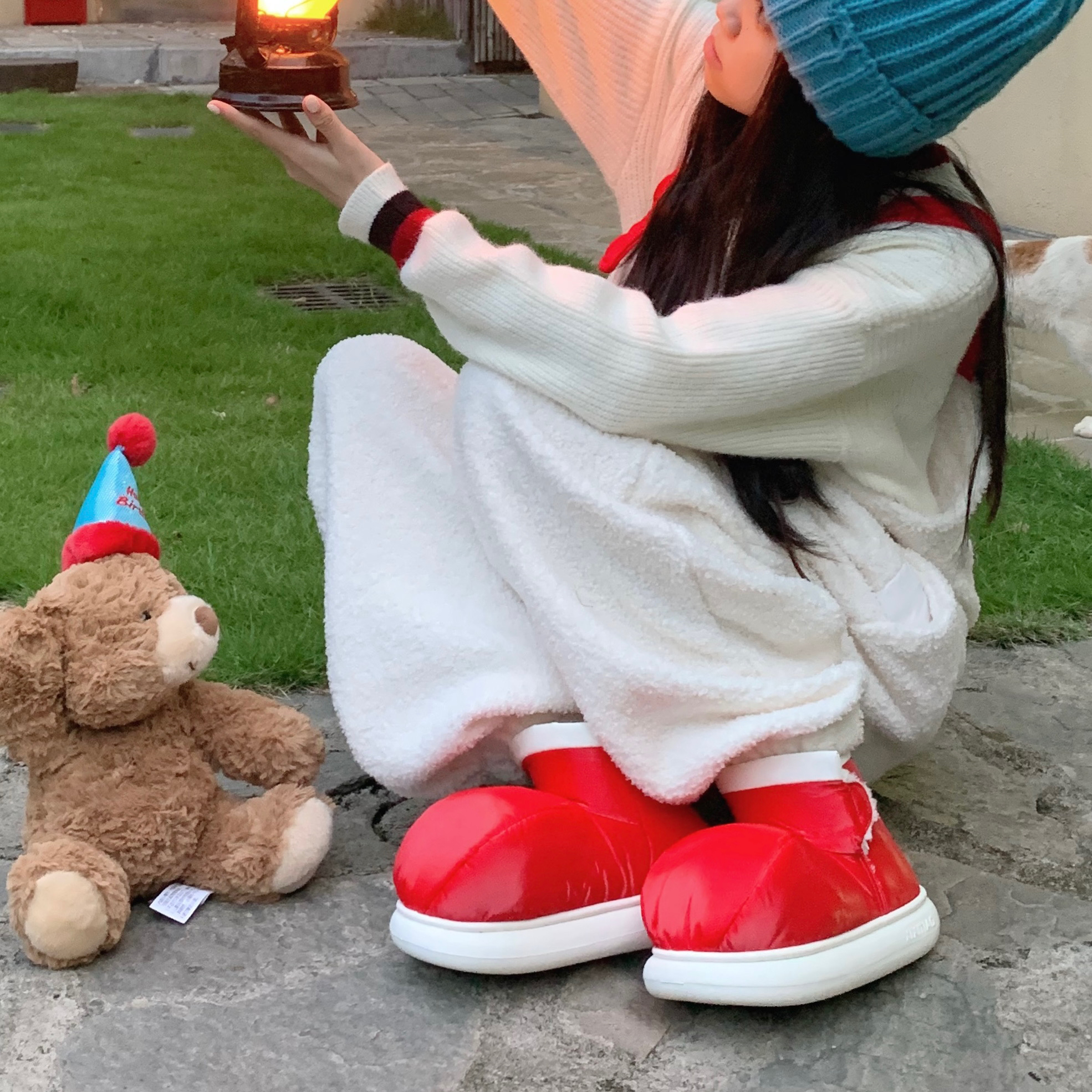 保暖加绒创意魔术贴亲子防滑外穿棉鞋 红色雪地靴女冬季 潮 个性 时尚