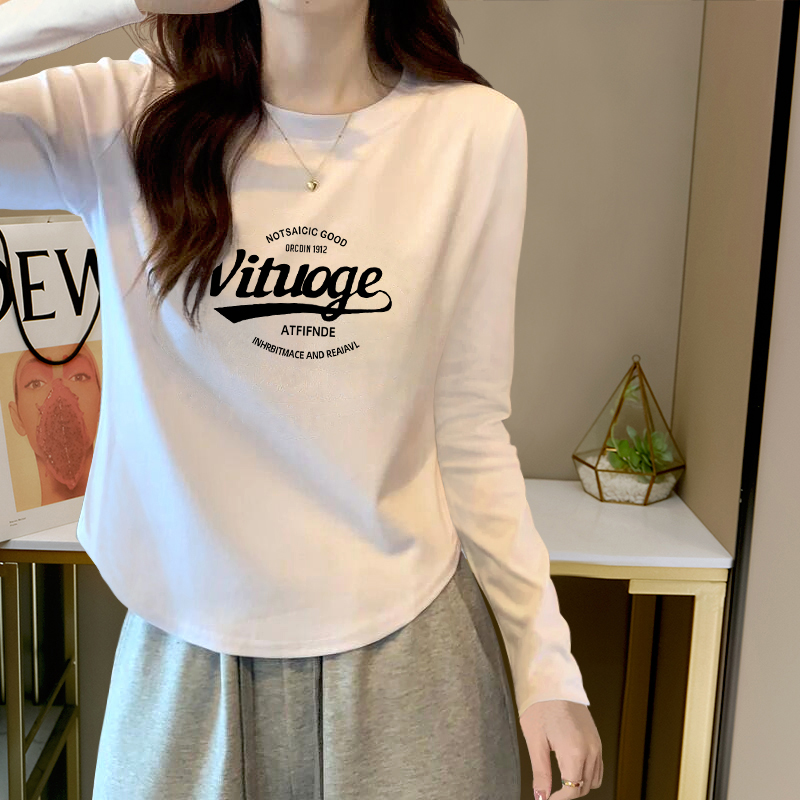 中长款 大码 纯棉宽松秋冬圆领打底衫 T恤女装 白色内搭上衣长袖