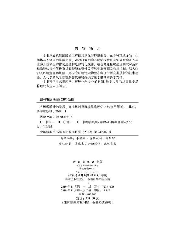 有机磷酸酯 毒性机制及环境风险评估 暴露
