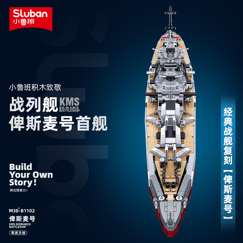 俾斯麦号战列舰积木中国山东辽宁航母军事船模型男孩拼装 玩具礼物